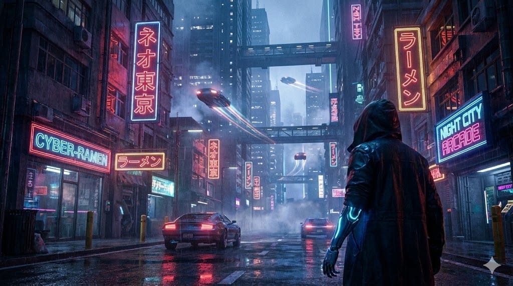 The Future: Cyberpunk Cities, Neon Streets, and High-Tech Labs.